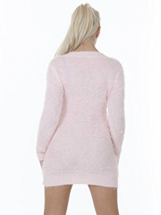 Ladies-V-neck-Fluffy-Jumper-Dress-Baby-Pink-SM-0-1