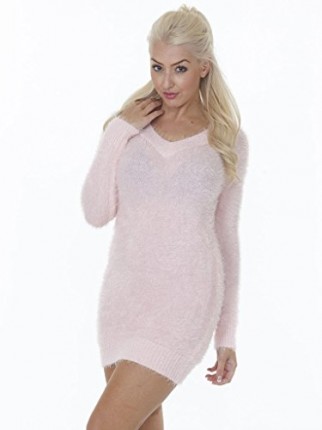 Ladies-V-neck-Fluffy-Jumper-Dress-Baby-Pink-SM-0-2