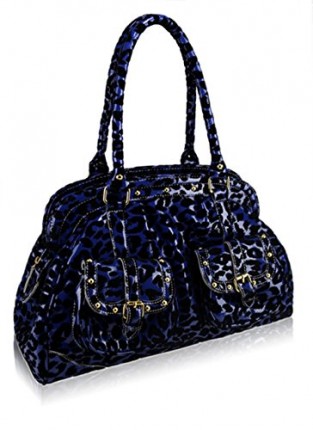 Blue Black Animal Print Shoulder bag Patent & Velour