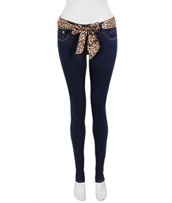Leopard Tie Belted Skinny Jeans (10,Navy)