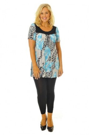 Nouvelle Leaf Print Top Turquoise Size 26-28