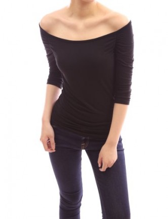 PattyBoutik-Off-Shoulder-Ruched-34-Elbow-Sleeve-Stretchy-Fitted-Casual-Top-Black-12-0-0 By Top Fashion ShopNovember 24, 20141 min read
