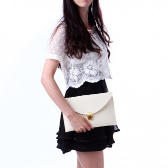 HDE Women’s Envelope Clutch Purse Handbag (Cream)