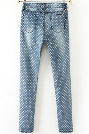 Womens-Blue-Polka-Dot-Bleached-Pencil-Jeans-0-0