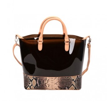 FASH’s Faux Snake Leather Tote Handbag-Black
