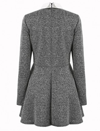 Womens-Grey-Long-Sleeve-Ruffle-Back-Zipper-Blouse-0-2