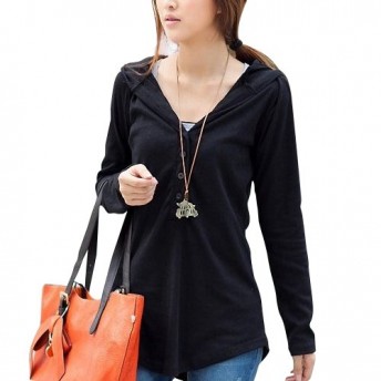 DJT-2014-New-Fashion-Design-Women-V-Neck-Button-Slim-Hoodied-SweatshirtTopTeeShirtBlouseT-Shirt-Black-Size-XL-UK-14-0