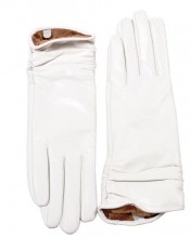May&Maya Women’s Pleated Wrist Premium Leather Winter Gloves White Size M