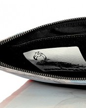 A dinky little satin pouch that keeps itFully lined and a small interior pocket.Closing system:high qualitty YKK metallic zipper classy thanks to a cute shoulder strap and 100% leather body – just the thing to keep your essentials together!