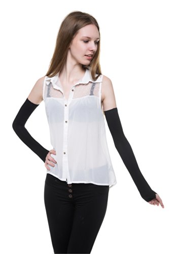 New Women Stretchy Long Sleeve Fingerless Gloves, Suitable for Dress Matching, Sun Protection, Halloween, Dressing Party. (Black)