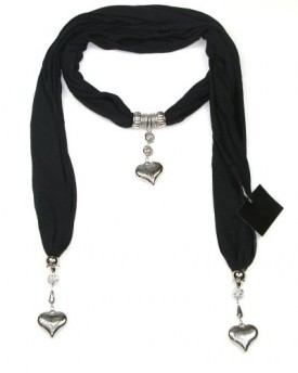 Women’s Black Scarf Heart Pendants – Valentines Day / Christmas Gift for Her – Jewellery Scarves