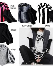 Beyondfashion New Blue Stripe Fashion Ladies Girls Soft Arm Warmer Long Sleeve Fingerless Gloves (Grey)