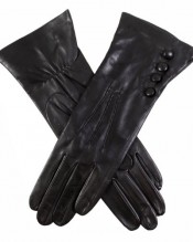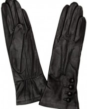 Ladies ‘Pittards Extrasoft 3000’ leather silk lined glove. Elasticated palm and three points on the back. Four leather covered buttons at the wrist.