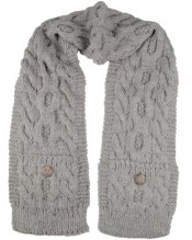 The wide scarf has button trim pockets at the ends which could
