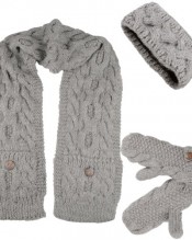 Includes: lined headband, pocket scarf and mitten gloves