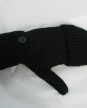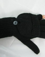 Ladies one size fingerless gloves with mitten covers that pull over finger ends when needed. Available in 3 colours; black, cream and pink. Thumb of glove is completely covered. The mitten covers when not being used are held in place by a small self coloured button. Gloves have double ribbed cuffs to ensure close fitting and keep the warmth in. Fully washable.