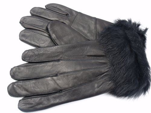 LADIES NEW HIGH QUALITY SOFT LUXURY LEATHER GLOVES DESIGNED BY LORENZ IN BLACK,FUR TRIMMED,SOFT VELVETY LINED, ,SUPERB QUALITY PAIR OF GLOVES AVAILABLE IN THE FOLLOWING SIZES:-,SMALL,MEDIUM,LARGE,EXTRA LARGE,LADIES GLOVE SIZING http://www.glovesonhand.co.uk/wa/1/43/1286-Sizes.htmlto find your glove size,please measure around the circumference of your dominant hand (your right hand if you are right-handed),at the widest part of the hand (over the back of your hand, just down a fraction from your knuckles, back across the palm and inside the thumb crotch). The measure should correspond to the following glove sizes:,6½” (16.50 cms) = Size S7″ (17.80 cms) = Size M7½” (19.10 cms) = Size L8″ (20.30 cms) = Size XL,IF FOR ANY REASON YOU ARE NOT SATISFIED WITH THIS ITEM YOU CAN RETURN FOR A FULL REFUND / REPLACEMENT IF THIS APPLIES PLEASE CONTACT ME ASAP.
