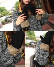 Ladies Warm Knitted Fleece Lined Wool Fur Winter Gloves Mittens – Black, Grey, Khaki, Beige, Red (Black)