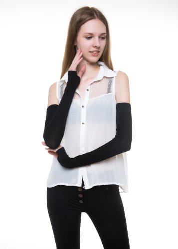 New Women Stretchy Long Sleeve Fingerless Gloves, Suitable for Dress Matching, Sun Protection, Halloween, Dressing Party. (Black)