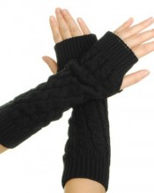 niceeshop(TM) 1 Pair Fashion Womens Braided Wool Knitted Crochet Long Soft Fingerless Winter Warm Arm Gloves-Black