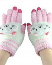 [Official Shop]BXT Cute Cartoon Coral Fleece Touch Screen Magic Gloves for iPad,iPhone,iPod,HTC,Samsung Smart Phones,Samsung Tablets – Pink and White Kitty