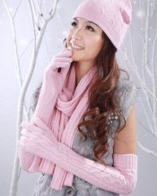 WARMEN Lady’s Opera Long Fingerless Wool Knit Gloves Mittens Winter Hand Warmer (Pink)