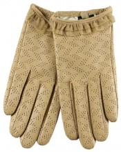 WARMEN Women’s Genuine Lambskin Comfortable Perforated Leather Gloves with Lace Cuff (M, Camel)