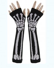 Womdee Punk Rock Skull Print Elbow Length Fingerless Gloves Arm Warmmer,Black With Womdee Accessory