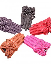 Women Lady Rivets Butterfly Soft Faux Leather Gloves (Medium, Black)
