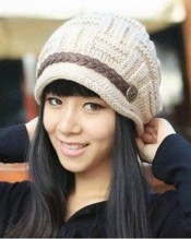 Beige Color Women Lady Beanie Crochet Hat Fashion Women’s Winter Warm Knit Wool Beanie Hat Crochet Cap