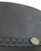 Mens Leather Bush Hat with plaited leather band and brass Kangaroo