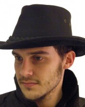 Campbell Cooper Australian Bute Leather Kangaroo Bush Hat – Black – Large