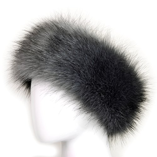 Faux Fur Headband For Women Winter Earwarmer Hat Ski (Graphite)