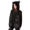 Ladies Black Faux Fur Husky Wolf Style Super Warm Animal Hat with Attached Scarf
