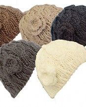 Ladies Womens Cable Knit Beanie Hat with Crochet Rose detail