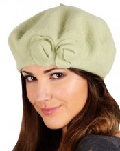 Ladies Pippa Classic Wool Beret Hat With 2 Roses Winter Accessory Avocado Green