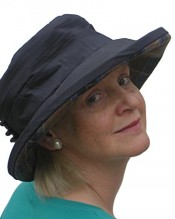 Ladies Pleated Wax Waterproof Winter Rain Hat with Bow (Navy)
