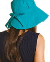 Ladies Wide Brim Sun Hat With Pleated Crown & Trim .One Size. UPF 50+Colour Turquoise