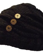 Ladies Winter Woolly Knitted Baggy Slouch Button Detail Ski Beanie Hat Black