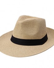 New Unisex Wide Brim Trilby Straw Cap Sun Hat Beach Summer Sunhat Beige