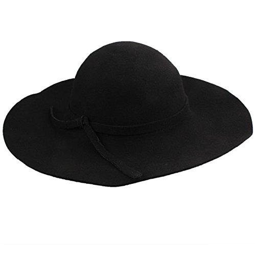 Ukamshop(TM)Floppy Cloche Women Vintage Wide Brim 100% Wool Felt Bowler Fedora Hat (Black)
