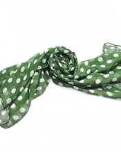 10mm Polka Dot, Large Viscose Scarf, Green /White Dot