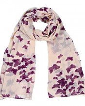 8Years Beige Colour Purple Butterflies Pattern Cotton Voile Scarf 180x110cm