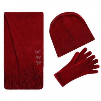 (A138)Ladies Soft 3 Piece Winter Gift Set, Hat Glove and Scarf Set, with Diamante detail, in Black, Cream or Red. **PERFECT GIFT SET** (RED)