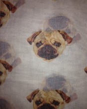 Beige pug dogs, Long Scarf, Soft Ladies Fashion London great for dog lovers