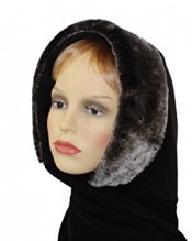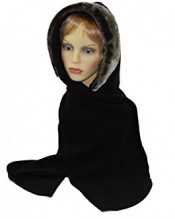 Brilliant Winter Adults BLACK Fleece Hooded Scarf With Silver Grey Fake Fur trim And Wrap Around Scarf, One Size, BNWT