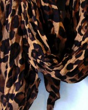 The base of this beautiful scarf is a Coffee Brown colour with a smooth circle leopard print design of chocolate brown encircled by dark brown leopard print.