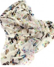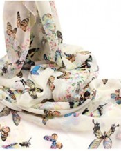 Demarkt Fashion Women Chiffon Wrap Butterfly Print Bowknot Pattern Scarf Shawl Scarves Off-White
