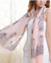 Demarkt Stylish Porcelain Leopard Print Pattern Scarf Shawl Women Chiffon Scarves Wrap Pink
