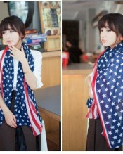 Demarkt Stylish Stars and Stripes Print USA Flag Pattern Scarf Shawl Women Chiffon Scarves Wrap